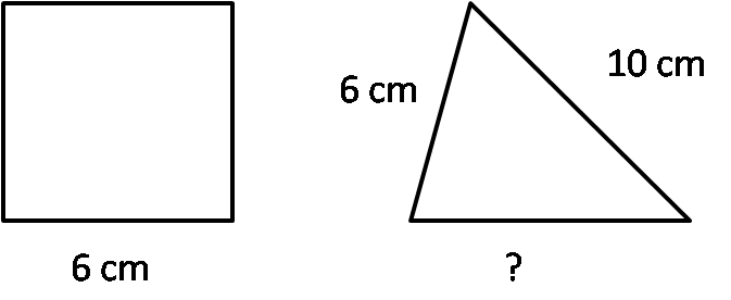 Yukarıdaki karenin çevresi ile üçgenin çevresi eşit olduğuna göre üçgenin verilmeyen kenarı kaç cm'dir?