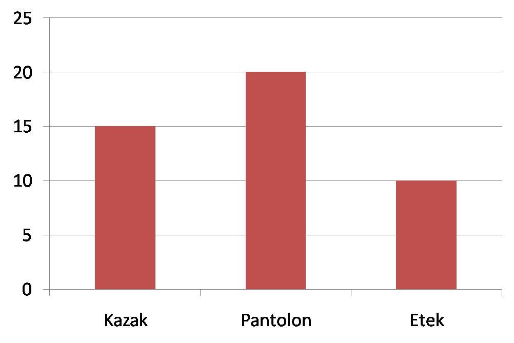 Yukarıdaki grafikte bir mağazada bir haftada satılan giysi sayıları verilmiştir. Buna göre aşağıdaki soruları cevaplayınız. Satılan gömlek ve etek sayısı kaçtır?