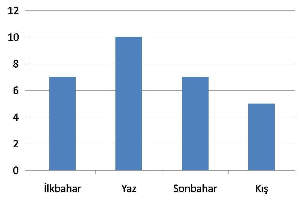 Yukarıdaki grafikte bir sınıfta bulunan öğrencilerin sevdikleri mevsimler gösterilmiştir. Buna göre aşağıdaki soruları cevaplayınız. En çok sevilen mevsim hangisidir?