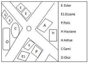 Hastanede olan Ali, krokiye göre eczaneye gitmek istese ona yolu nasıl tarif edersiniz?