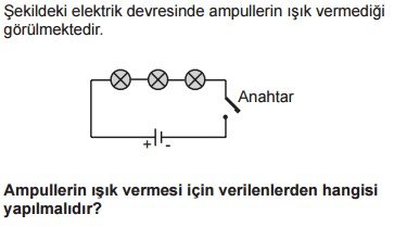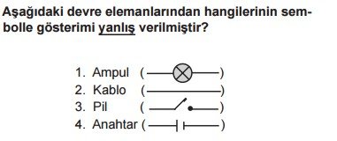 Yukarıdaki basit elektrik devresinde sembolle gösterilmeyen devre elemanı hangisidir?