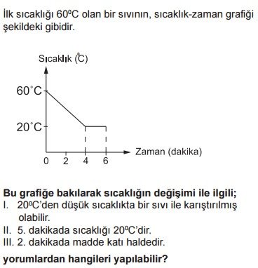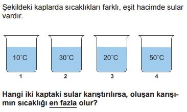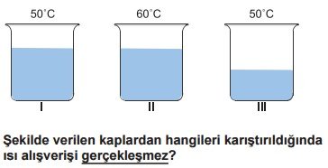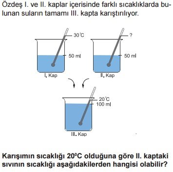 Sıcaklıkları sırasıyla 100 derece ve 60 derece olan K ve L sıvı- ları karıştırılıyor. Aşağıdakilerden hangisi oluşturulan karışımla ilgili yanlış bir yorumdur?