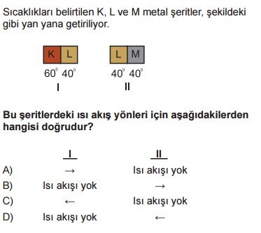 Aşağıdaki cümlelerden hangisinde ısı ve sıcaklık kavramları yanlış kullanılmıştır? A) B) C) D)