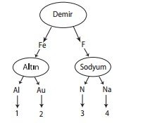 Şemada yer alan elementlerin sembollerini takip eden bir öğrenci, doğru çıkışa hangi numaradan ulaşmıştır?